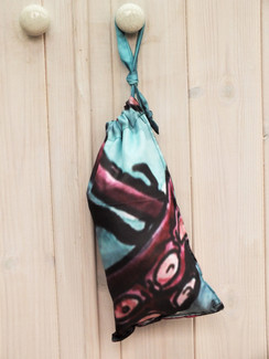 As the pockets were likely to poke below the hem when they had something in them I decided to add some ribbon inside running from the top of the pockets to the armpits to prevent it dropping too low. I used some of the left over fabric to make a little drawstring bag so I can truly pack the jacket away. I'm so pleased with this make, I have no idea how waterproof it is as I haven't used it yet but I think I will use it quite a lot as a light coat, I think it's really cool.
